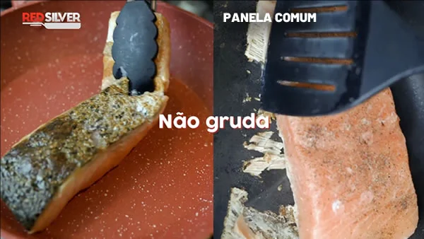Através da tecnologia antiaderente exclusiva RS-ULTRA 3, de 3 camadas, a RedSilver é capaz de preparar os alimentos sem grudar e sem usar óleo, mesmo após muito tempo de uso.